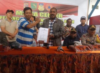 Bantuan itu, langsung diserahkan oleh Bupati Puncak, Willem Wandik kepada Wakil Bupati Jayapura, Giri...
