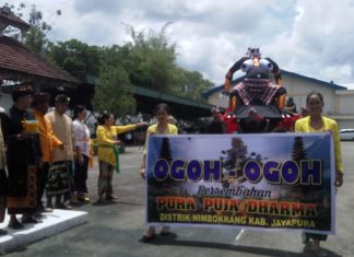 JAYAPURA (PT) - Dalam rangka memperingati Hari Raya Nyepi Tahun Baru Saka 1941, Ratusan Umat Hindu Kabupaten Jayapura Lakukan Pawai Ogoh-ogoh dari Halaman Kantor Bupati Jayapura hingga Pura Giri Cyclop, Rabu (6/3).