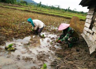 Babinsa Bantu Petani Binaan Bajak Sawah dan Tanam Padi