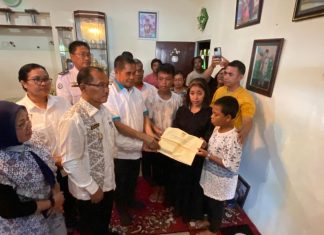 MERAUKE (PT) - Pemerintah Provinsi Papua dalam hal ini Gubernur Papua, Lukas Enembe, SIP, MH yang diwakilkan Sekda M. Ridwan Rumasukun menyerahkan bantuan keoada keluarga Nahkoda Kapal Kelvin 02, Sugeng yang ditembak tentara Papua Nugini (PNG), Rabu (24/8), di...