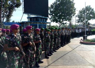 JAYAPURA (PT) - Aparat gabungan TNI - Polri melakukan apel gabungan untuk patroli cipta kondisi dalam rangka memperingati hari Hak Azasi Manusia (HAM) se Dunia di Bundaran Libra Jalan Brawijaya, Kelurahan Kelapa Lima, Distrik Merauke, Kabupaten Merauke, Sabtu (15/12).