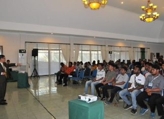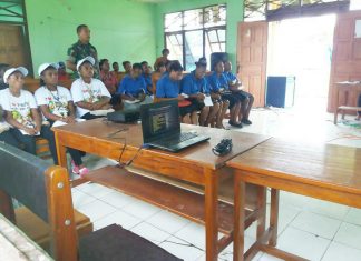 JAYAPURA (PT) – Bertempat di aula kantor Distrik Unurum Guay, Danramil 1701-16/Unurum Guay, Kapten Inf Sungging N. Wijaya memberikan materi Peningkatan Kesadaran Bela Negara kepada 70 orang peserta Jambore PKK se Distrik Unurum Guay, Kabupaten Jayapura, Selasa (27/11).