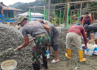 Satgas Pamtas Yonif PR 328/DGH Bantu Pembangunan Masjid