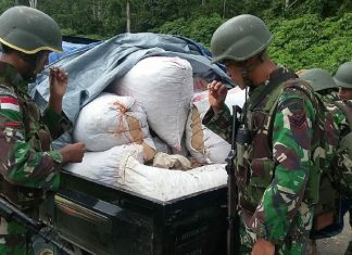 Lagi, Satgas Yonif 121/MK Gagalkan Penyelundupan 1 Ton KKM
