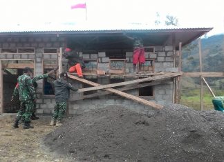 TNI Bersama Warga Bangun Kantor Kampung di Lanny Jaya