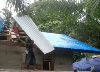 JAYAPURA (PT) - Sersan Dua. Nikolas Murray Bintara Pembina Desa (Babinsa) Koramil 1711-03/TMH bersama sejumlah warga membantu memperbaiki rumah salah satu warga Kampung Uni, Distrik Bomakia, Kabupaten Boven Digoel, Kamis (6/9/2018).