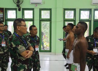 JAYAPURA (PT) - Panglima Kodam XVII/Cenderawasih, Mayjen TNI. George Elnadus Supit, S.Sos memimpin sidang pemilihan tingkat pusat Bintara PK pedalaman Tahun 2018 di Aula Serba Guna Rindam XVII/ Cenderawasih Sentani, Jumat (31/8/2018).