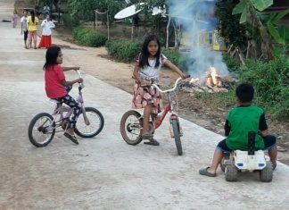 Misalnya saja, kebahagiaan mereka terlihat sedang bersepeda, berlari-lari, dan bermain mobil-mobilan di jalan yang sudah rampung...