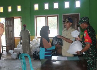 JAYAPURA (PT) - Babinsa Koramil 1707-05/Merauke, Kopda. Riyadi membantu Kepala Seksi Kesejahteraan Rakyat Kampung Sukamaju, Huriyanto untuk membagikan bantuan paket sembako kepada masyarakat lanjut usia Kampung Sukamaju di Gedung Serbaguna Distrik Malind, Kabupaten Merauke, Selasa (24/7/2018).
