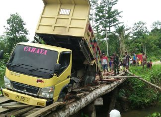 JAYAPURA (PT) - Jembatan yang terletak di Kampung Warironi, Distrik Yapen Timur, Kabupaten Kepulauan Yapen mengalami rusak berat akibat kayu yang menjadi bahan utama pembangunan jembatan tersebut rapuh dan ambruk.