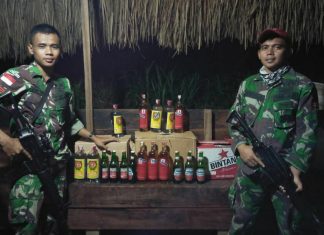 JAYAPURA (PT) - Sebanyak 200 gram ganja kering siap edar dan 42 botol minuman keras (miras) berhasil disita anggota Satgas Yonif Para Raider 501/Kostrad saat menggelar razia di Perbatasan RI-PNG, Sabtu (21/7/2018).