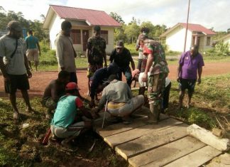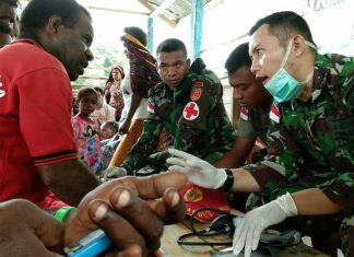 JAYAPURA (PT) - Dalam rangka memperingati Hari Keluarga Nasional (Harganas) pada 29 Juni lalu, Satuan Tugas (Satgas) Yonif Para Raider 501/Kostrad menggelar acara pengobatan gratis kepada masyarakat di Kampung Gambut, Koya Barat, Distrik Muara Tami, Kota Jayapura, Selasa (3/7/2018).