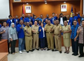 JAYAPURA-Pemerintah Provinsi Papua yang diwakili Asisten Bidang Perekonomian dan Kesejahteraan Rakyat Sekda Papua, Elia I.Loupatty, bersama Pimpinan OPD terkait diantaranya Kepala Bappeda Provinsi Papua Muh Musa’ad, Kepala Biro Perekonomian Setda Papua, Ribka Monim dan Kakesbangpol Musa Isir, Kepala Biro...
