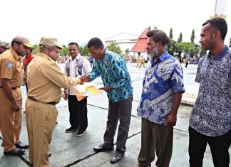 JAYAPURA – Dimasa kepemimpinan 4 tahun Gubernur Papua, Lukas Enembe, SIP, MH dan Wakil Gubernur, Klemen Tinal, SE, MM secara resmi menyerahkan bantuan berupa kartu nelayan dan asuransi kepada nelayan di halaman Kantor Gubernur, Senin...