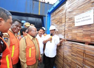 Gubernur Enembe Kembali Ekspor 100 Kontainer Kayu Olahan Ke China
