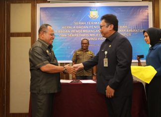 JAYAPURA (PT) - Pj. Sekretaris Daerah Papua, Derek Hegemur memimpin serah terima jabatan (sertijab) tiga kepala Organisasi Pimpinan Daerah (OPD) dilingkungan Pemerintah Provinsi Papua, Jumat (31/5) yakni dari Hans Hamadi kepada Matias Benoni Mano sebagai Plt Sekretaris Majelis Rakyat...