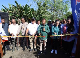 JAYAPURA (PT) - Pj. Gubernur Papua, M. Ridwan Rumasukun meresmikan Unit Pengolahan Hasil (UPH) Tepung Sagu dan Penanaman Sagu Kelompok Usaha Bersama (KUBE) Mabers Phuyaka, di Kampung Sereh, Sentani, Kabupaten Jayapura, Rabu (26/6).