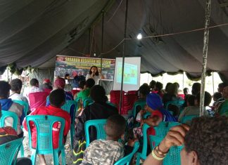 SERUI (PT) - Selain kegiatan fisik, TMMD ke 105 Kodim 1709/Yawa juga menggelar kegiatan non fisik, salah satunya menggelar kegiatan penyuluhan tentang bahaya miras kepada warga Kampung Mansesi dan Kampung Kaipuri, Selasa, (30/7).