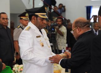 JAYAPURA (PT) - Gubernur Papua, Lukas Enembe, SIP, MH secara resmi melantik Piter Gusbager sebagai Wakil Bupati Keerom untuk sisa masa jabatan 2016-2021.