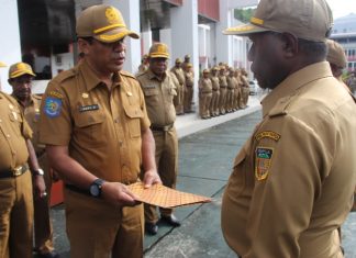 JAYAPURA (PT) – Drg. Aloysius Giyai, M.Kes dipercaya kembali menjabat sebagai Pelaksana Tugas Direktur Rumah Sakit Umum Daerah (RSUD) Jayapura dan Dr. Anton Mote sebagai Pelaksana Tugas Direktur Rumah Sakit Jiwa (RSJ) Abepura.