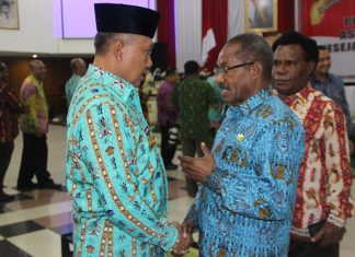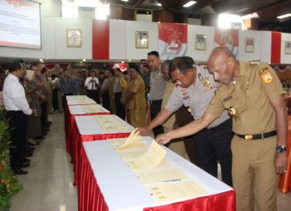 JAYAPURA (PT) – Dalam upaya pencegahan korupsi dalam penyelenggaraan pemerintahan daerah, Aparat Pengawas Intern Pemerintah (APIP) serta Aparat Penegak Hukum (APH) Kabupaten/Kota Se-Papua sepakat menandatangani perjanjian kerjasama tentang koordinasi APIP-APH dalam penanganan pengaduan masyarakat dalam penyelenggaraan pemerintahan.