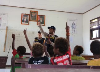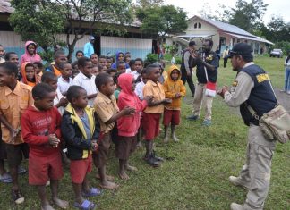 JAYAPURA (PT) - Binmas Noken Polri melaksanakan program Polisi Pi Ajar di SD Inpres Megapura, Jalan Raya Kurima, Distrik Asolokobal , Sabtu (24/11) pagi.