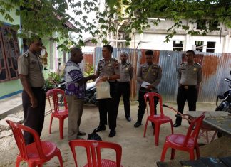JAYAPURA (PT) - Kasat Binmas Polres Supiori Ipda Maryono bersama anggotanya melakukan anjangsana dan silahturahmi kepada tokoh adat dan masyarakat dengan sistem door to door dalam rangka cipta kondisi menjelang 1 Desember, Selasa (27/11).