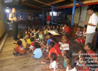JAYAPURA (PT) - Polres Jayapura Kota terus melakukan pembinaan terhadap warga di wilayah hukumnya. Salah satunya, dengan mengajari anak-anak SD yang ada di sekitar Gereja Argapura Pantai, Selasa (27/11).