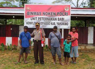 JAYAPURA (PT) - Tim Binmas Noken Polri melakukan meninjau ke spot peternakan babi di Kabupaten Yahukimo sekaligus bekerjasama dengan Dinas Peternakan Kabupaten Yahukimo dalam memberikan vaksin kepada ternak Babi, Rabu (28/11).