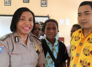 JAYAPURA (PT) - Dalam sela-sela kegiatan menyampaikan materi pengetahuan dan wawasan kebangsaan kepada siswa-siswi Sekolah Menengah Pertama Negeri (SMPN) 12 Mimika, Brigpol Betty Rumaseu, salah satu polwan yang tergabung dalam Satgas Binmas Noken Polri merasa haru dan bangganya, karena...