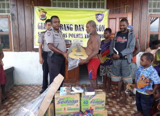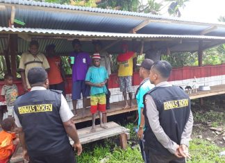 JAYAPURA (PT) - Untuk menjalin kemitraan dengan masyarakat dan menciptakan situasi kondusif menjelang Pemilu 2019 di Kabupaten Yahukimo, Satuan Binmas Polres Yahukimo menyambangi kelompok masyarakat Anggruk yang berada di Distrik Dekai, ibu kota Kabupaten Yahukimo, Kamis (15/11).