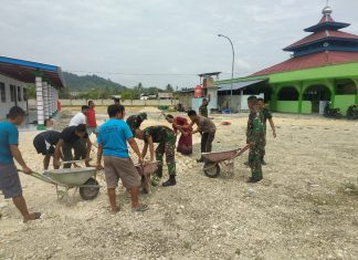 TNI-Polri Bersama Warga Bersihkan Masjid Fisabilillah Arso 1 Keerom