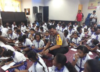 Wakapolres Ajak Murid Kalam Kudus Sentani Tertib Berlalu Lintas
