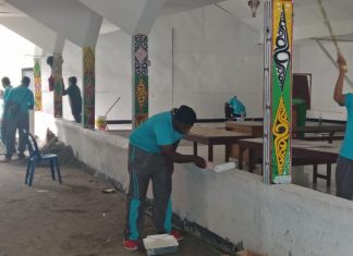 JAYAPURA (PT) - Bhabinkamtibmas Kampung Wesakma, Bripka Syariefudin Tuanakota sambangi sanggar seni tari di Kampung Wesakma, Minggu (4/11).