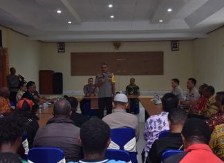 JAYAPURA (PT) - Pasca bentrok antar dua kelompok warga, Kapolda Papua Irjen Pol Drs Martuani Sormin, MSi langsung turun melakukan tatap muka bersama tokoh agama, tokoh masyarakat, tokoh pemuda dan perempuan di Aula Polres Pegunungan Bintang, Kamis (4/10).