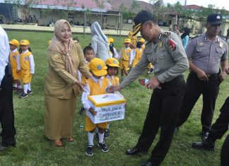 JAYAPURA (PT) - Sebagai bentuk kepedulian dan simpati terhadap musibah bencana alam gempa bumi dan tsunami yang terjadi di Palu, Sigi dan Donggala, anak-anak TK Kemala Bhayangkari 13 menggalang dana di Polres Jayawijaya, Senin (8/10).