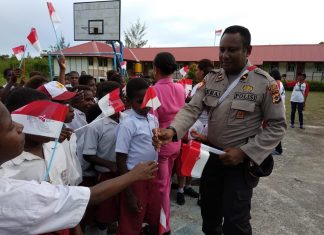 JAYAPURA (PT) - Sebagai bentuk kepedulian Polri akan pendidikan, Satgas Binmas Noken berikan pembelajaran dasar dan wawasan kebangsaan kepada murid-murid SD Orin Kidd, Dekai, Kabupaten Yahukimo, Selasa (25/9).