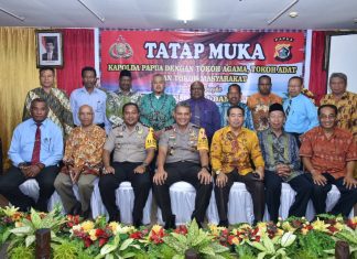 JAYAPURA (PT) - Kapolda Papua Irjen Pol Drs Martuani Sormin, MSi melakukan tatap muka dengan para tokoh agama, tokoh adat, dan tokoh masyarakat dalam rangka pemilu aman, damai dan sejuk di Papua pada tahun 2019 di yang digelar di...