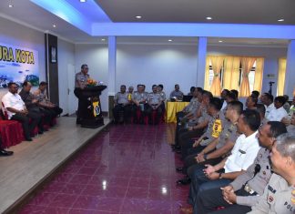 JAYAPURA (PT) - Kapolda Papua Irjen Pol Drs Martoani Sormin, MSi didampingi Ketua Bhayangkari Daerah Papua Ny Risma Martoani Sormin Siregar beserta para Pejabat Utama Polda Papua melaksanakan kunjungan kerja ke Polres Jayapura Kota, Selasa (25/9)