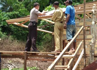 Warga Kampung Bantu Rumah Dinas Anggota Bhabinkamtibmas Polres Supiori