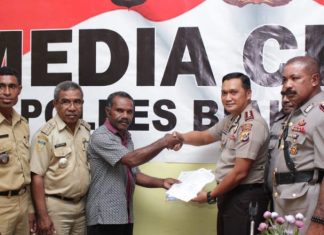 JAYAPURA (PT) - Menciptakan situasi yang aman menjelang Pemilu 2019 baik Pemilihan Legislatif maupun pemilihan presiden serta untuk menjalin kemitraan dengan masyarakat, Polres Yahukimo menyambangi warga Suku Momuna di Jalan Paradiso, Distrik Dekai, Kabupaten Yahukimo, Jumat (14/9).
