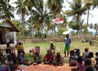 JAYAPURA (PT) - Kepala Kepolisian Polres Merauke AKBP Bahara Marpaung, SH melalui Kapolsek Okaba Ipda Ary Prianggodo bersama anggotanya memberikan penyuluhan kepada warga masyarakat di Kampung Sanggase, Distrik Okaba tentang Kamtibmas, Rabu (12/9/2018)