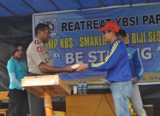 JAYAPURA (PT) - Kapolres Jayawijaya, AKBP. Yan Pieter Reba, SE, M.Si menghadiri kegiatan Reatreat YBSI Papua (SMP, SMAKER dan SSB Biji Sesawi) di SMA Kristen Wamena, Kamis (30/8/2018).
