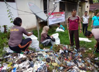 JAYAPURA (PT) - Kapolres Boven Digoel, AKBP. Yohanis Afri SR, SIK, SH, MM memimpin acara kerja bhakti bersama Polisi Wanita (Polwan) membersihkan halaman Kantor Polres serta situs wisata di Boven Digoel, Jumat (31/8/2018).