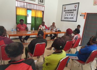 JAYAPURA (PT) - Dalam rangka membantu masyarakat penyelesaian masalah di tingkat Kampung, Kasat Binmas Polres Jayawijaya, Iptu. Suparyono mendorong masyarakat di Kampung Lantipo untuk membentuk Forum Kemitraan Polisi dan masyarakat, Sabtu (1/9/2018).