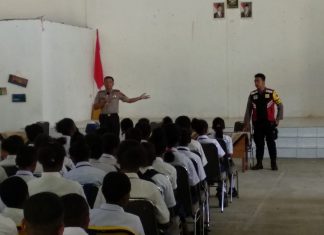 JAYAPURA (PT) - Binmas Polres Supiori melaksanakan kegiatan Polisi Pi Ajar Sekolah di Aula SMP Negeri 1 Kpudori, Distrik Supiori Utara, Senin (03/9/2018).