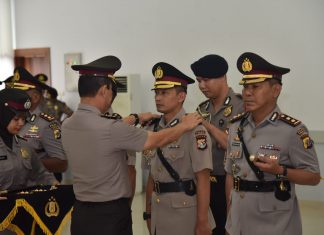 JAYAPURA (PT) - Sebanyak lima Kapolres di Polda Papua diganti dan diserahterimakan, Sabtu (18/8/2018) di Aula Rastra Samara Polda Papua.