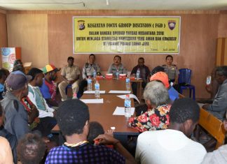 JAYAPURA (PT) - Satgas Binmas Noken Polres Lanny Jaya menggelar Fokus Group Discusion (FDG) di Kantor Kampubg Yakobak, Kabupaten Lanny Jaya.
