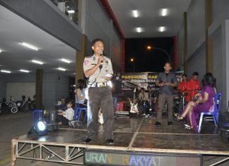 JAYAPURA (PT) - Kapolres Merauke, AKBP. Bahara Marpaung, SH melalui Kanit Laka Satuan Lalu lintas Polres Merauke, Aiptu. Joko Junior didampingi Bripka. Muhammad Iksan bersama artis dari Zacky musik meriahkan panggung Kamtibmas dalam rangka HUT Proklamasi Kemerdekaan RI ke...