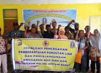 JAYAPURA (PT) - Sosialisasi RM Papeda, Anti Hoax dan Saber Pungli yang dilakukan Polsek Sentani Barat dipimpin Kapolsek, AKP. P. Harianja di Balai Kampung Dosay, Distrik Sentani Barat Kabupaten Jayapura, Selasa (7/8/2018).